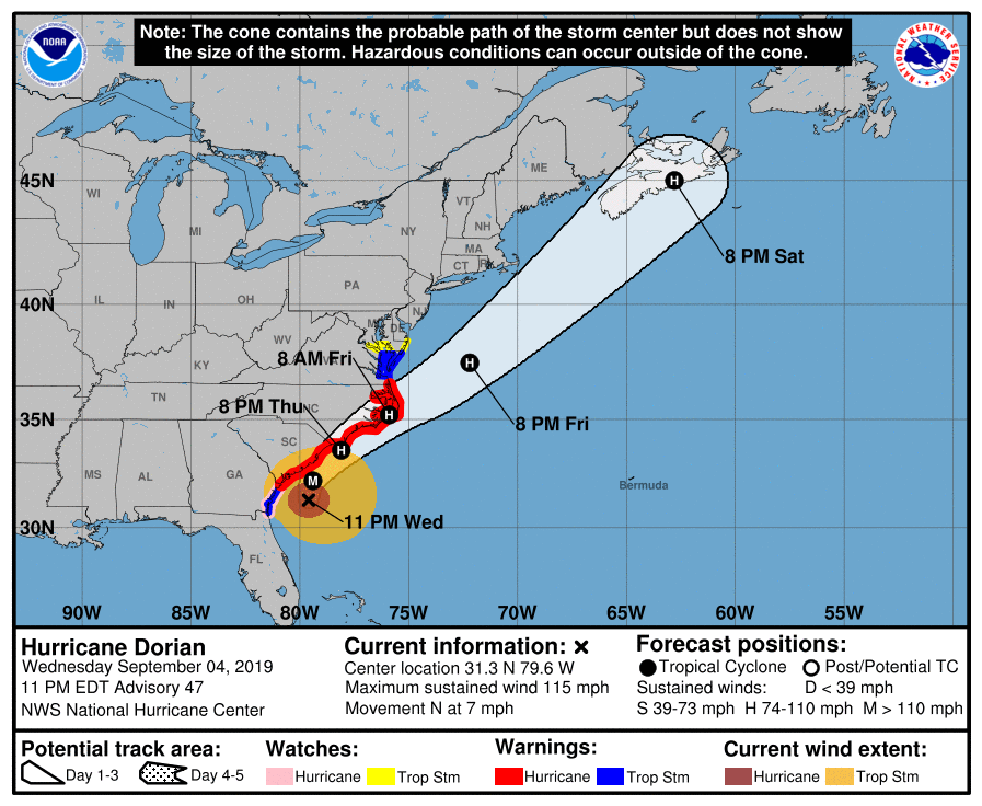 Hurricane Dorian Updates Category 5 Storm Shifts Toward North Carolina South Carolina Georgia Latest On Landfall Track Path Weather Forecast And Models And Live Updates