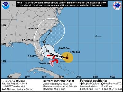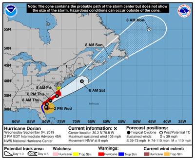 Saturday 1 Pm Update Chance Of Dorian Impacting Eastern Nc As Hurricane Increases The Eastern Beacon