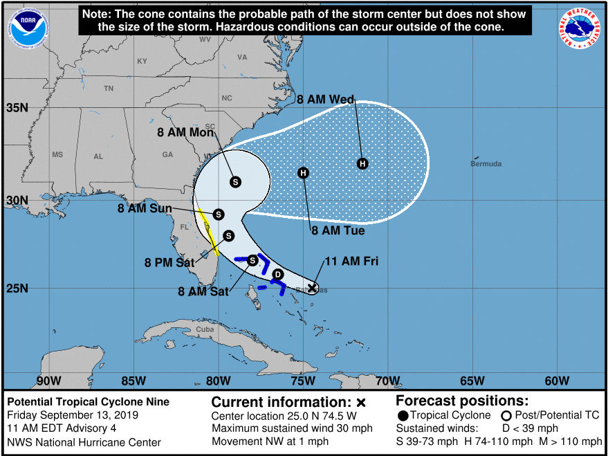 Hurricane Dorian Forecast Cone