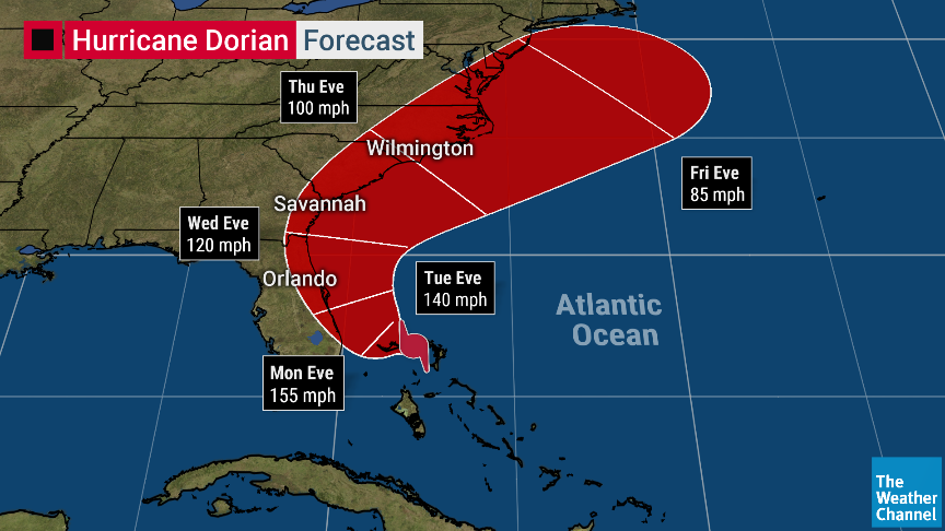 The Weather Channel On Twitter Dorian Remains A Destructive Category 5 Hurricane Late This Evening The Track Still Has The Monster Storm Turning To The North And Going Right Up The Florida