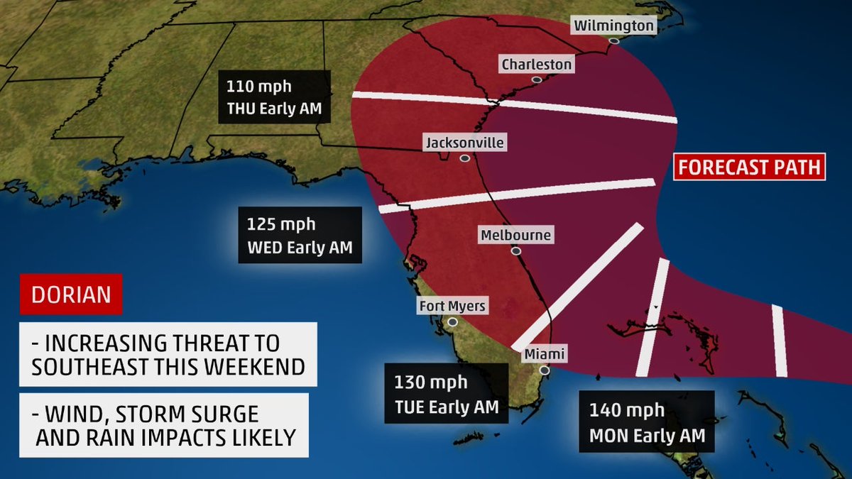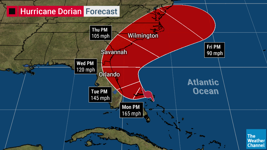 The Weather Channel On Twitter Dorian Remains A Destructive Category 5 Hurricane Late This Evening The Track Still Has The Monster Storm Turning To The North And Going Right Up The Florida